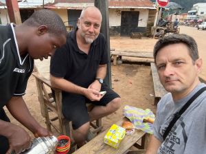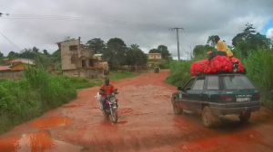 We left Macenta on a very well kept National Road 2 to lead us further northwest. The road wound through the hills where low fog was visible between the many trees. It also rained once in a while. Of course we got stopped several times again by gendarmes along our route. They were all very friendly and just interested what two while blokes were doing in an Ivorian car that looked a bit different from what they had seen so far, on a Guinean national road. A small chat led to some good wishes for the onward journey and off we went again.