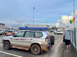 We had try to time our arrival at Conakry International airport between large passenger flights not having to wait too long for our visas to be processed and printed. Unfortunately, when we entered the outskirts of Conakry, we discovered that a large truck had skidded down a hill and blocked one side of the city motorway completely. This caused a complete traffic chaos as cars tried to pass on all sides. We stood still in one spot for more than 30 minutes before it started moving a bit again. Madness all around us. We moved slower but our timing was gone as we had lost more than 45 minutes.