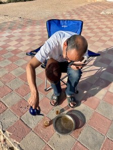 The owner brought Brahim and me some ‘Moroccan whiskey’, i.e. mint tea, that was so strong, it could wake up the dead. In the afternoon sun we sat in the car wash bay, out if the wind and sipped our tea. What a joy!