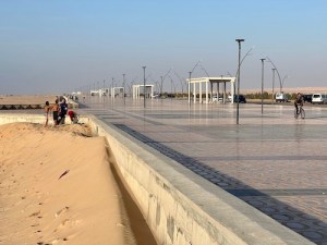 Afterwards we walked over to the corniche to discover what it had to offer. We were impressed by its size. The wide seafront is nicely tiled and fitted with plenty of benches and parking places. Especially remarkable, since the corniche is detached from the city by a large strip of wasteland that will probably be built upon at some point only in the distant future.