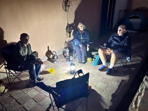 Tonight we did a rather simple dinner, as our late lunch was already so lavish. Fir a while we sat in the car wash bay around the camping lamp, as it was a camp fire, chatting until it got too chilly.