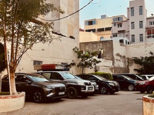 At the end of the motorway, in the middle of downtown Dakar, we met the first serious traffic jam. It went very slowly into the very crowded small streets of Plateau, the commercial heart of Dakar. Most of the roads are organised in a grid system and are oneway. Street signs are usually absent and, therefore, you have to go with the flow of traffic, not to turn wrongly. We shuffled along and made little progress, as many people walked around our cars and motorcycles swerved around us. We came to a larger crossing, where it was evident that we were not allowed to turn left. A friendly taxi driver next to us gesticulated and shouted out of his window, that we had to turn right and take the next left afterwards, when he saw where we wanted to go. Thankful, we followed his instructions. Just around the corner from the place, where we wanted to be, a cement truck took one half of the road and we had to squeeze past it.