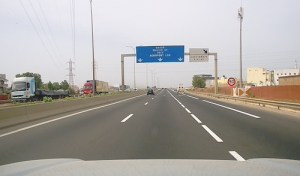 Finally, after many kilometres behind various slow trucks, we reached the wonderful motorway. Stunned by the good state of the road, we advanced swiftly towards the capital at 90km/h. We came to the first toll station and I held my breath, because the normal tariff for cars, lower than 2.30m, was 500 cfa. Eeyore is 2.38m and if they have sensors at the booths, like in Côte d’Ivoire, the system might classify Eeyore as a truck that tariff is much higher. But luckily, no sensors I could see and the lady classified us correctly. So, I paid just 500 cfa. Trevor paid too and we continued.
