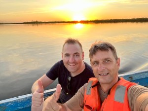 Trevor had already voiced his concerns, that we had gotten lost or drowned via WhatsApp. Even there, in almost complete wilderness, you have 4G in Senegal! We told him not to worry, we were only swimming back. It could, therefore, take a while. He was, meanwhile, eaten alive by the mosquitoes back in camp.