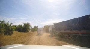 Traffic on the N1 was moderate but with many trucks going east towards Fatick. About 18km before the town, we encountered a major traffic jam of only trucks. Strange, we thought All cars in front of us turned around or drove off the road onto a sandy piste next to the main road. We quickly decided to do the same. So with several cars of all makes and models, we drove down the winding piste, sometimes a few centimetres next to the road and a few times leading us many tens of meters away from the actual road. We started wondering what caused this massive traffic jam of only trucks. Was it an accident, was it road works, was it a demonstration, or was it something else?