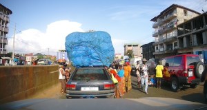 In between were plenty of female hawkers selling anything from overripe bananas, snacks, water, soft drinks, shaving kits, clothes, flipflops, nuts, warning triangles, fire extinguishers, belts, charging cables and much more. Female hawkers walked up and down the waiting cars trying to sell something. Some of them as young as primary school children with heavy plastic dishes on their heads carrying cool water sacks. If you don’t react to their offerings, they knock on the window. I usually just knock back what takes them by surprise and they continue. Alex looks at them with a very angry face to the same effect. Once in a while you have a young boy or girl with a blind grandpa stand at your window demanding money. Sometimes it is also an old imam who then starts reciting, what I believe is, the Quran and then asks for a few notes.