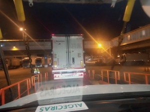 The ferry left about 45 mins early (we had a similar experience on the downward trip) and was very empty, perhaps two dozen people including truck drivers. It took about 45 mins and we were out quickly behind 2 trucks. Passports checked and customs just waved us through, quite amazing. It was only getting light when we left the ferry and clouds were heavy.