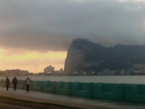 We decided to see if we could quickly have a look around Gibraltar as we were in the area. It was not clear if we needed visas, or, being European residents, whether we would be let in on that basis. The traffic, both vehicles and pedestrians, into Gibraltar was quite heavy, clearly lots of people work there but live in Spain. They asked for our passports and we gave them as well as our residents cards, but they said we could only enter if we had a UK or specific Gibraltar visa. We had neither so were not allowed in, but we got magnificent views of “the Rock” as it is literally about a km away, despite the cloudy weather.